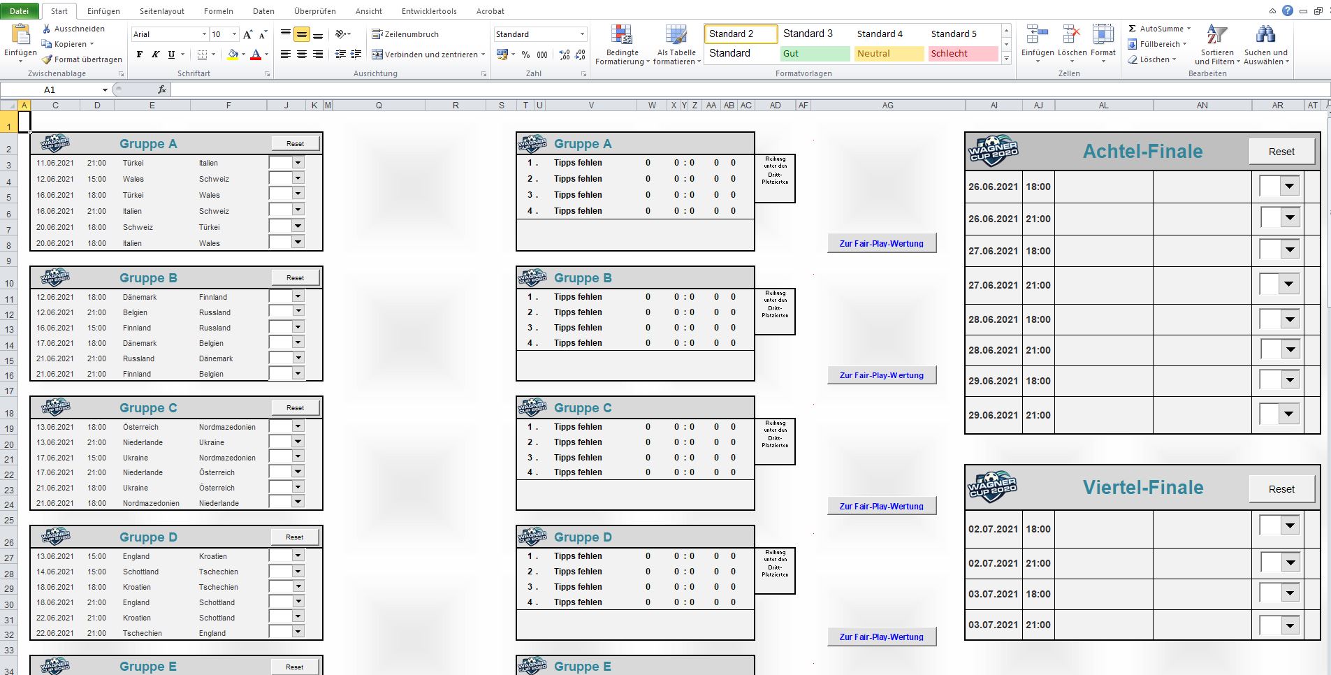 Der Aufbau entspricht dem EM-Reglement: aus den Tipps für die Gruppenspiele ergeben sich die jeweiligen Gruppentabellen und somit auch die 1/8-Final-Spiele, sowie in weiterer Folge das Viertel-, das Halbfinale und das Finale. In sich unlogische und/oder unmögliche Kombinationen sind ausgeschlossen.