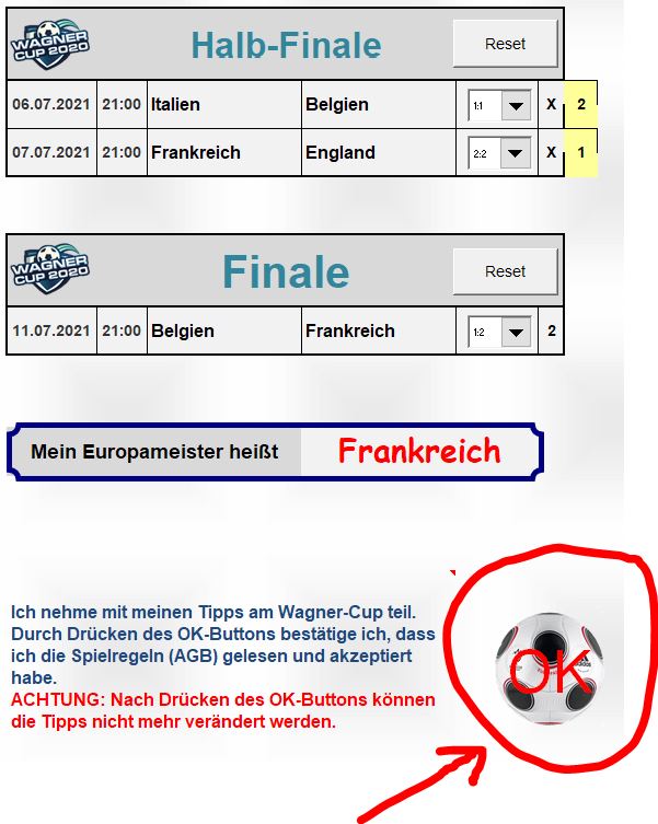 Es gelten ausschließlich diese fixierten Tipps. Nachträglich im Tipp-Formular vorgenommene Änderungen machen das Formular ungültig!